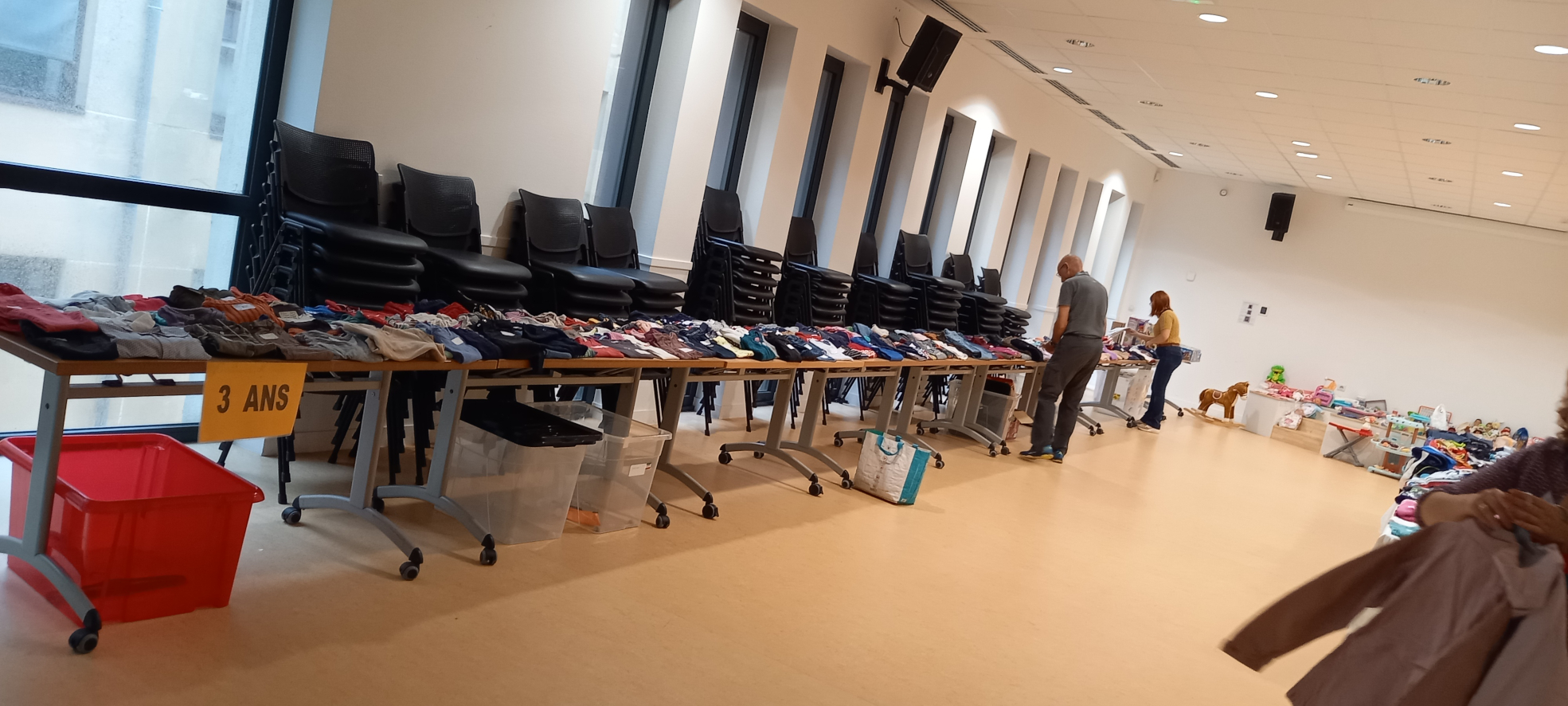 Le dimanche 14 septembre 2025, une dizaine de familles adhérentes de l’association ont participé à notre traditionnelle bourse aux vêtements automne-hiver, en proposant à la vente vêtements, jouets et équipements de puériculture. Le public s’est déplacé en nombre, permettant à chacun de réaliser de belles affaires. Au-delà de l’aspect solidaire et économique, cette journée a surtout été un agréable moment de partage et d’échanges, placé sous le signe de la convivialité et de la bonne humeur entre les membres de l’association.